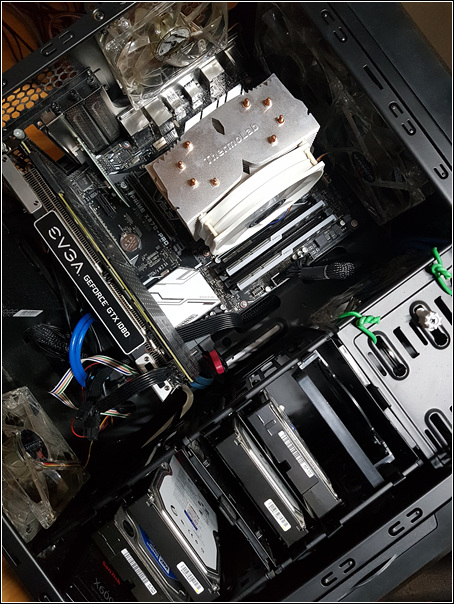 덕분에.....설치 중이던 쿨러를 다시 다 제거하고, 케이스에서 보드까지 빼낸 뒤에야 제대로 장착을 할 수 있었다. 신규로 컴퓨터를 조립하는 것이라면 보드를 케이스에 장착하기 전에 쿨러부터 장착하고 케이스에 고정할 것을 추천한다. 기존에 사용하던 쿨러를 교체하는 사람이라면.......컴퓨터를 다 분해하고.........재조립 하는 것을 추천한다.